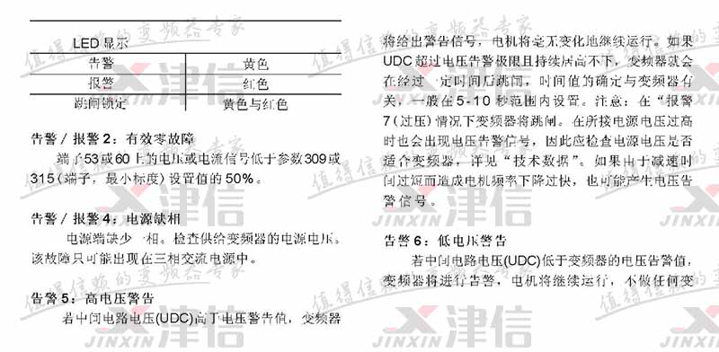 | 故障代碼 | 故障描述 | 警告 | 報警 | 跳閘鎖定 |