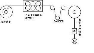 3,收卷:線速度同步+恒張力控制,有跳舞輪位置反饋,變頻器作閉環工藝控制,控制跳舞輪的位置。