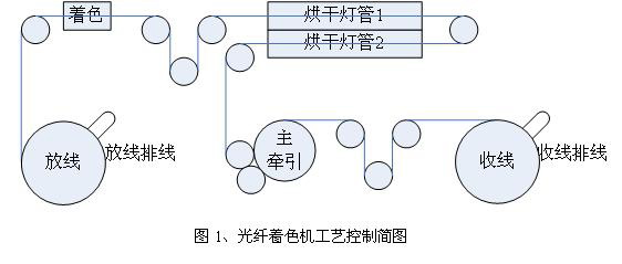 引言:光纖制造行業的一道關鍵工序就是光纖著色。該工序的工藝質量好壞直接影響光纖產品的質量。該設備控制復雜,包括放線、放線排線、主牽引、收線和收線排線等運動控制以及烘干燈管等附屬工藝裝置的控制。尤其是對收線排線的平整度要求很高。