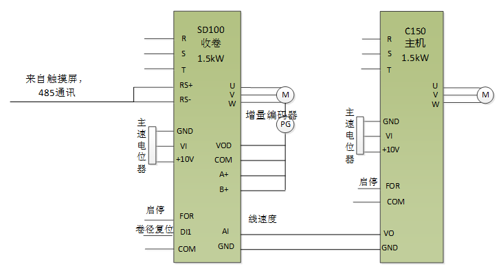 原收卷系統(tǒng)采用“變頻器+電機(jī)+磁粉+張力控制器”的模式,設(shè)備使用一段時(shí)間后需要對(duì)磁粉進(jìn)行維護(hù),且磁粉故障率較高,增加了廠家和客戶(hù)的故障點(diǎn)和維護(hù)成本;