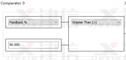 斷線停機(jī)功能要靠變頻器的采用SLC邏輯輔助完成。SLC邏輯流程如下,18號(hào)端子閉合后,變頻器運(yùn)行,并開啟時(shí)間繼電器0時(shí)間,時(shí)間繼電器0延時(shí)時(shí)間到并檢測到反饋值超出范圍,則停機(jī)。運(yùn)行過程中端子27斷開,也停機(jī)。