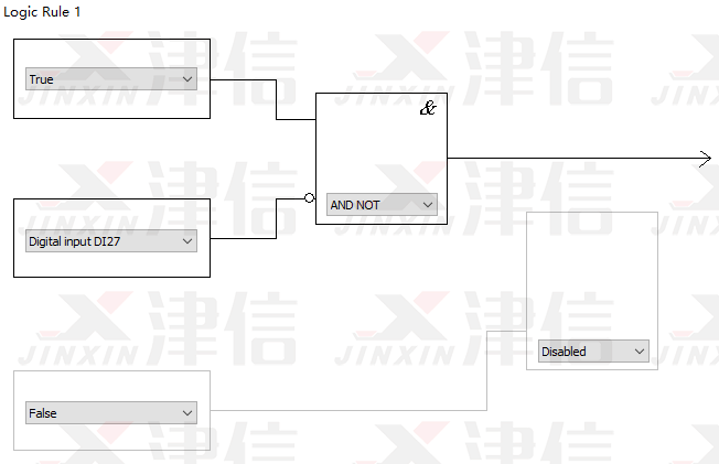 Logic Rule 1判斷是否符合停止條件。在運(yùn)行過程中,如果按下停止按鈕,27號(hào)端子斷開,經(jīng)過邏輯判斷,滿足停機(jī)要求,變頻器將停止輸出。