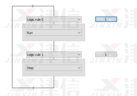 斷線停機(jī)功能通過SLC邏輯輔助完成。SLC邏輯流程圖如下,Logic Rule 0判斷是否符合啟動(dòng)條件,Logic Rule 1判斷是否符合停止條件。