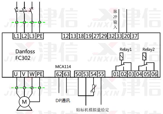 第一種方案,不動PLC程序,一臺FC302做主機,加裝MCA114 Profibus-DP通訊卡,接入原DP現場網絡。主機接線圖如下:
