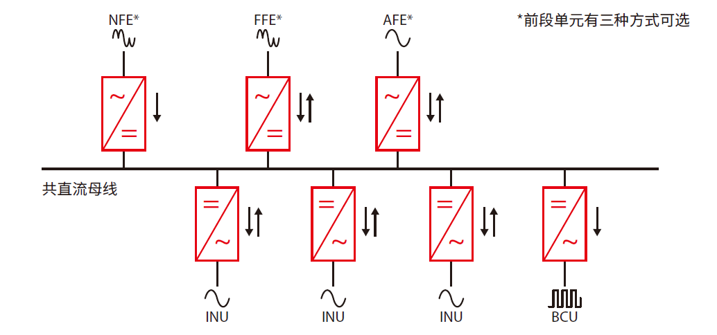 3,Vacon全面提供滿足各種復雜驅動需求的共直流母線產品,其功能特性完全基于 VACON® NX 系列變頻驅動產品的先進技術平臺,并可提供多種功能模塊的組合方式,擁有高效節(jié)能,電網諧波低,便于維護等優(yōu)異特性和廣闊的應用空間。