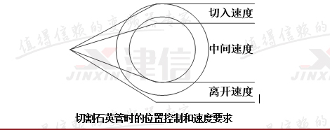 石英切割機有三個控制部分構成:切刀旋轉控制、切刀位置控制和送料位置控制。切刀旋轉控制只要速度可調即可;切刀位置控制需要在切割石英管或石英棒的過程中控制其位置和不同段內的速度,首先要保證切割產品的刀口質量,同時要提高生產效率;送料位置控制需要每次往前送設定長度的石英管或石英棒,精度要求0.2毫米。